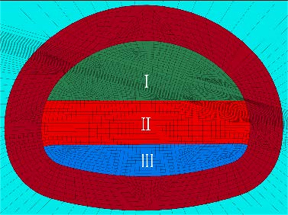Alkali injection treatment is a key method for stabilizing surrounding rock containing H2S. To examine the deformation of surrounding rock with and without coal seams under different excavation methods and alkali injection treatments, the finite difference method for single-hole alkali injection, double-side-wall excavation, and three-bench excavation is simulated. The results indicate that, under the same excavation method, compared with no alkali injection, the displacement of the vault increases by 23.37% to 24.33% for a 3% alkali concentration and by 34.55% to 42.70% for a 5% concentration. The horizontal convergence of side walls increases by 18.20% to 25.53% for a 3% alkali treatment and by 46.20% to 61.08% for a 5% alkali treatment. When two coal seams tilt through the working face, the deformation of the lower layer is more significant than that of the upper. The greatest deformation occurs at the intersection of the lower layer and the excavation line. Under different alkali injections, compared with the three-bench excavation method, the vault settlement of the double-side-wall excavation method decreases by 7.65% to 11.37% and the horizontal convergence of sidewalls decreases by 22.80% to 72.27%. When the surrounding rock contains coal seams and is treated with alkali injection, it is recommended to use the double-sided excavation method.