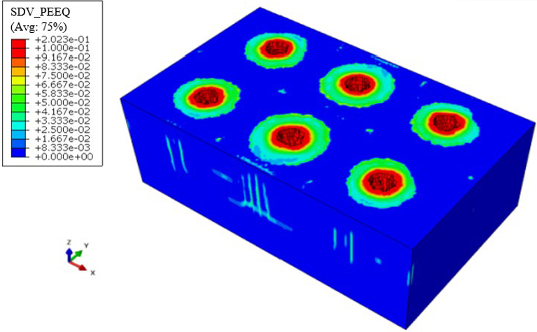 Depth gradients, which arise from variations in geostress at different strata, lead to rapid alterations in the internal stress state of rocks during blasting operations. These changes contribute to heterogeneities in rock strength and blast resistance, thereby presenting potential risks to engineering safety. To understand the damage and fracture patterns typically observed in granite blasting activities within underground engineering projects, we created a series of rectangular six-hole models using the advanced finite element software ABAQUS. By utilizing the Coupled Eulerian-Lagrangian (CEL) technique, the model distinguished between Eulerian parts, segmented into domains, and Lagrangian elements; the Eulerian domain was designated as air, while the Lagrangian section was characterized by TNT to mimic the shock wave propagation following detonation. This research scrutinizes the geostress conditions of granite across varying depth gradients, elucidates the extent and severity of granite impairment induced by blasting, and furnishes innovative viewpoints and methodologies for examining rock damage mechanisms in blasting engineering.